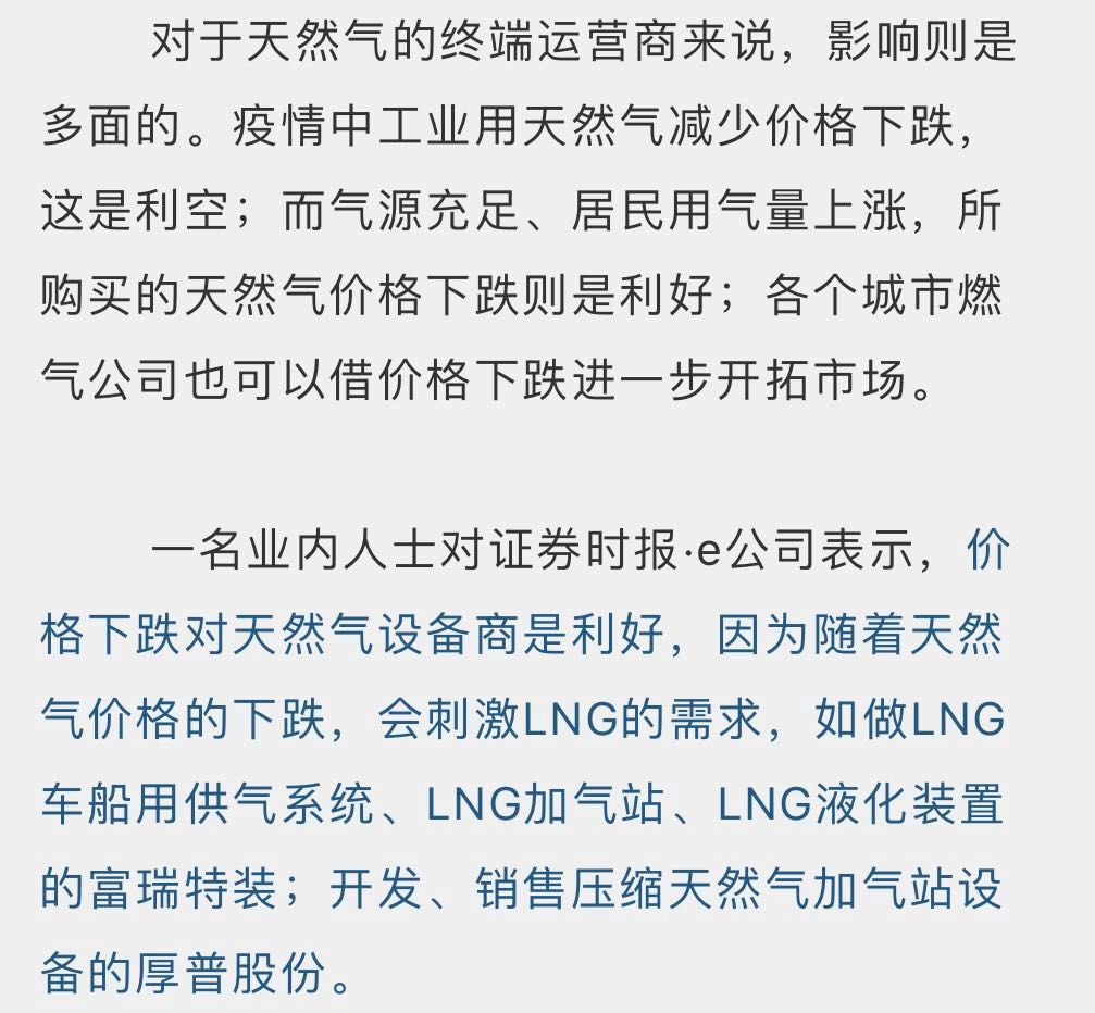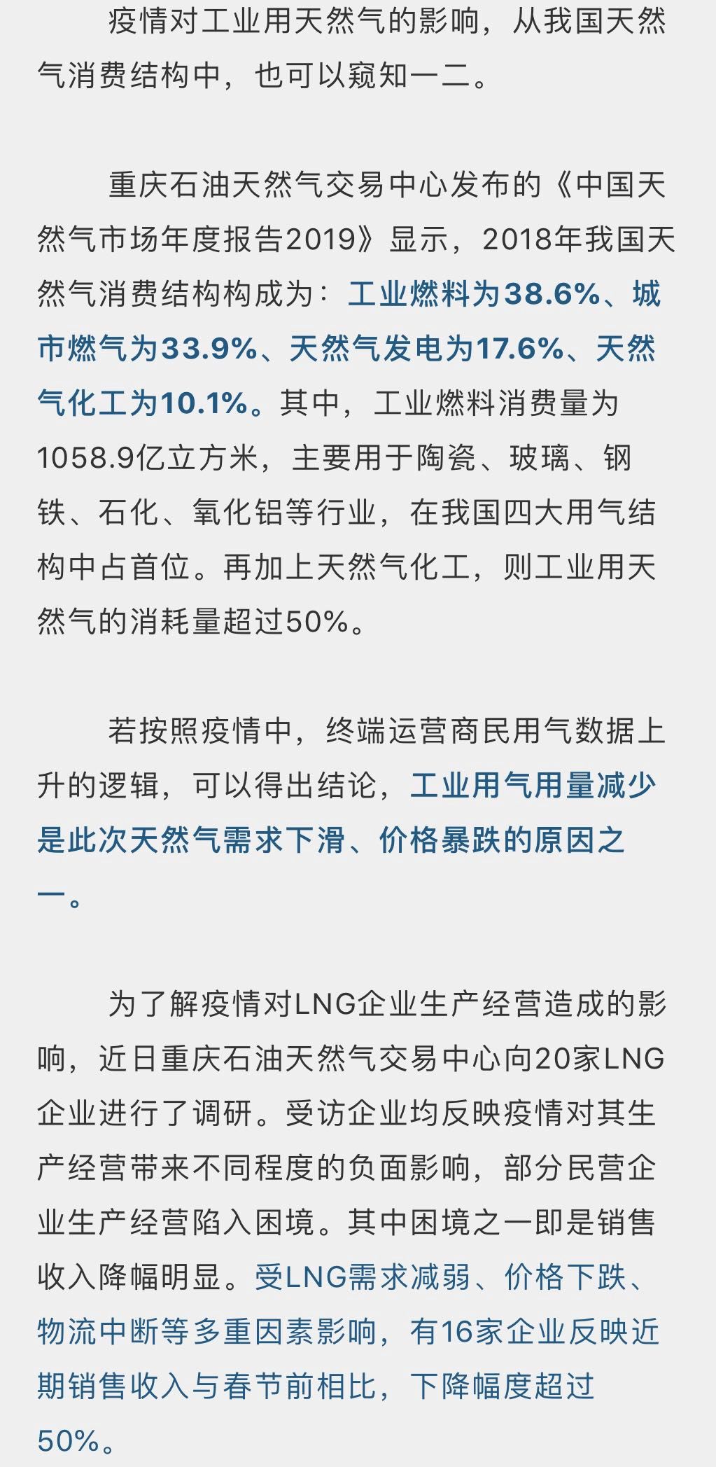 除了原油,天然气价格也在暴跌,对产业链有哪些影响?